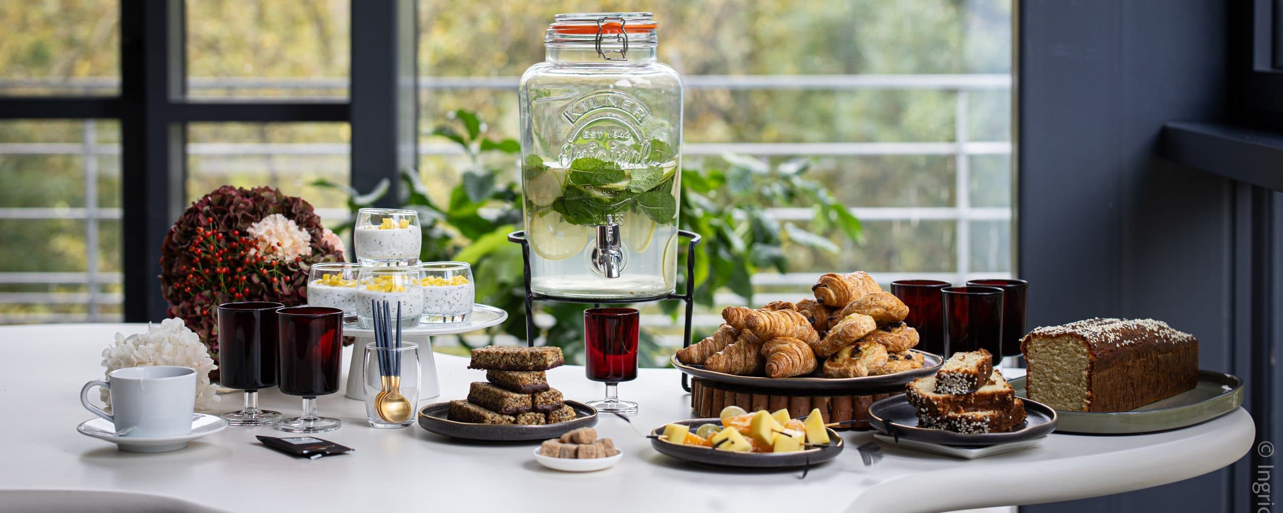 Envie d'un petit-déjeuner ET aussi d'un buffet déjeuner généreux et convivial OU juste envie de se régaler ? Choisissez le Brunch de la maison, tout y est, promis votre appétit sera comblé : cakes fondants, viennoiseries croustillantes, yaourts fermiers, barre de céréales maison, fruits frais, quiches et planches et boissons sourcées.